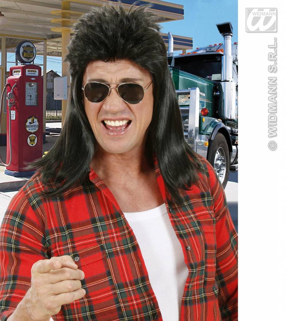 Pruik Mullet zwart