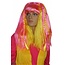 Kleur roze/geelPruik is voorzien van twee staarten en twee vlechten